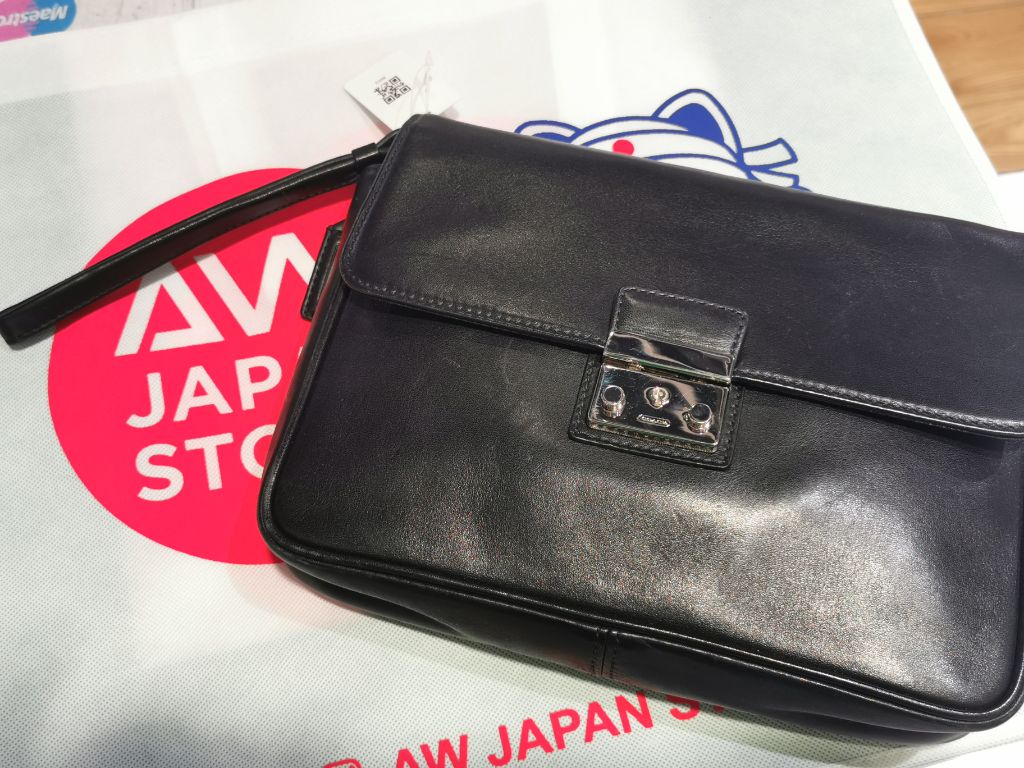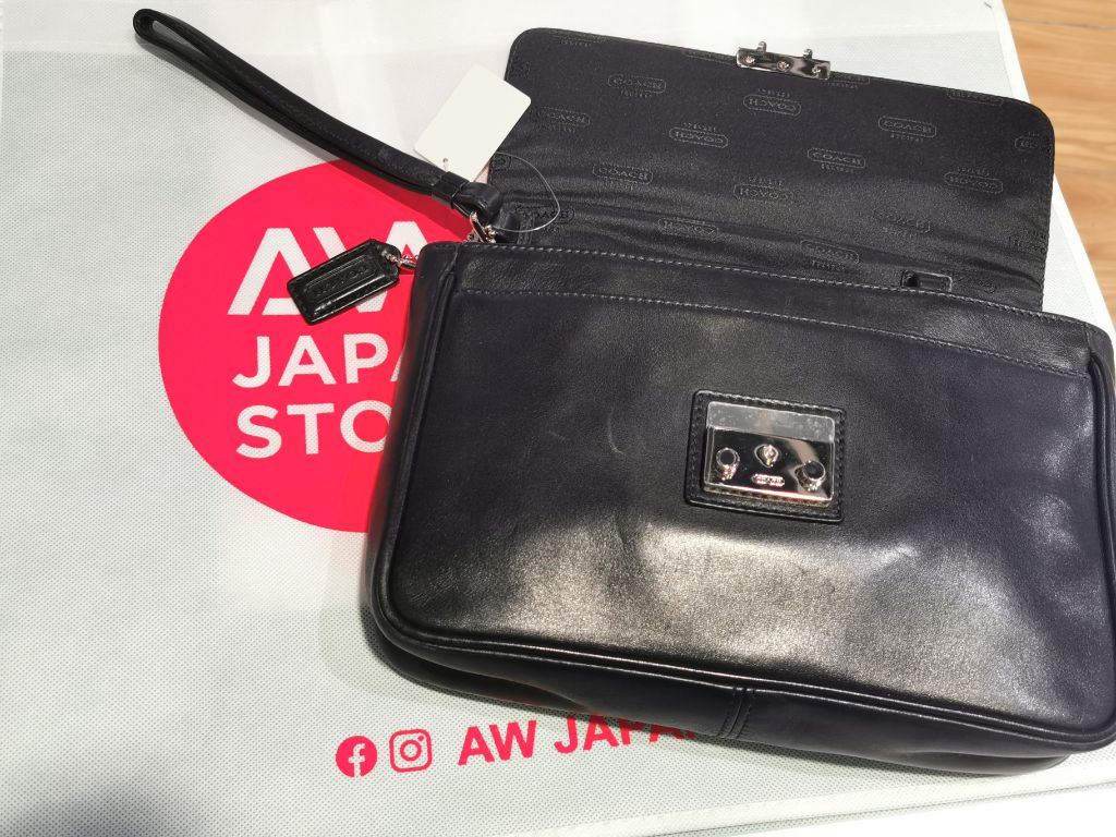 VINTAGE COACH BLACK LEATHER CLUTCH